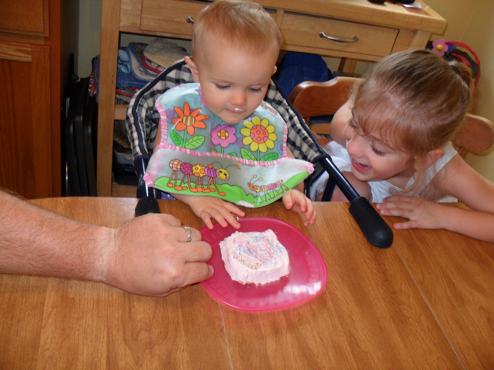 Before I get to updating you on the rest of the summer, I wanted to post some pictures of H4's birthday before the date slips too far behind. She turned a year old on July 8th. We were blessed to spend the day in Ohio with my parents and H1's dad. The cake didn't turn out as pretty as I'd hoped it would, but apparently it tasted pretty good, so we'll take it, right?